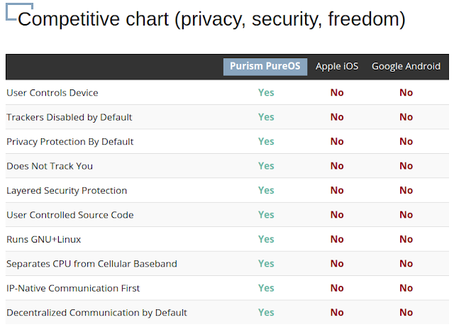 Comparison of Purism PureOS with other popular OS